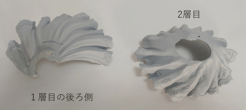 1層目の前後パーツそれぞれと2層目で勘合を取って、後はめできることを確認しながら進めます。
