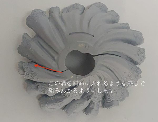 完成後接着するか、台座に固定した後、横から差し込みすることもできます。
