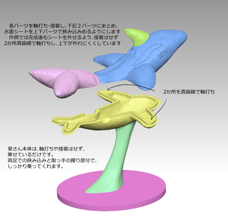 泉さん本体より、まず台座・フロートを組み立てたほうが良いと思います。
